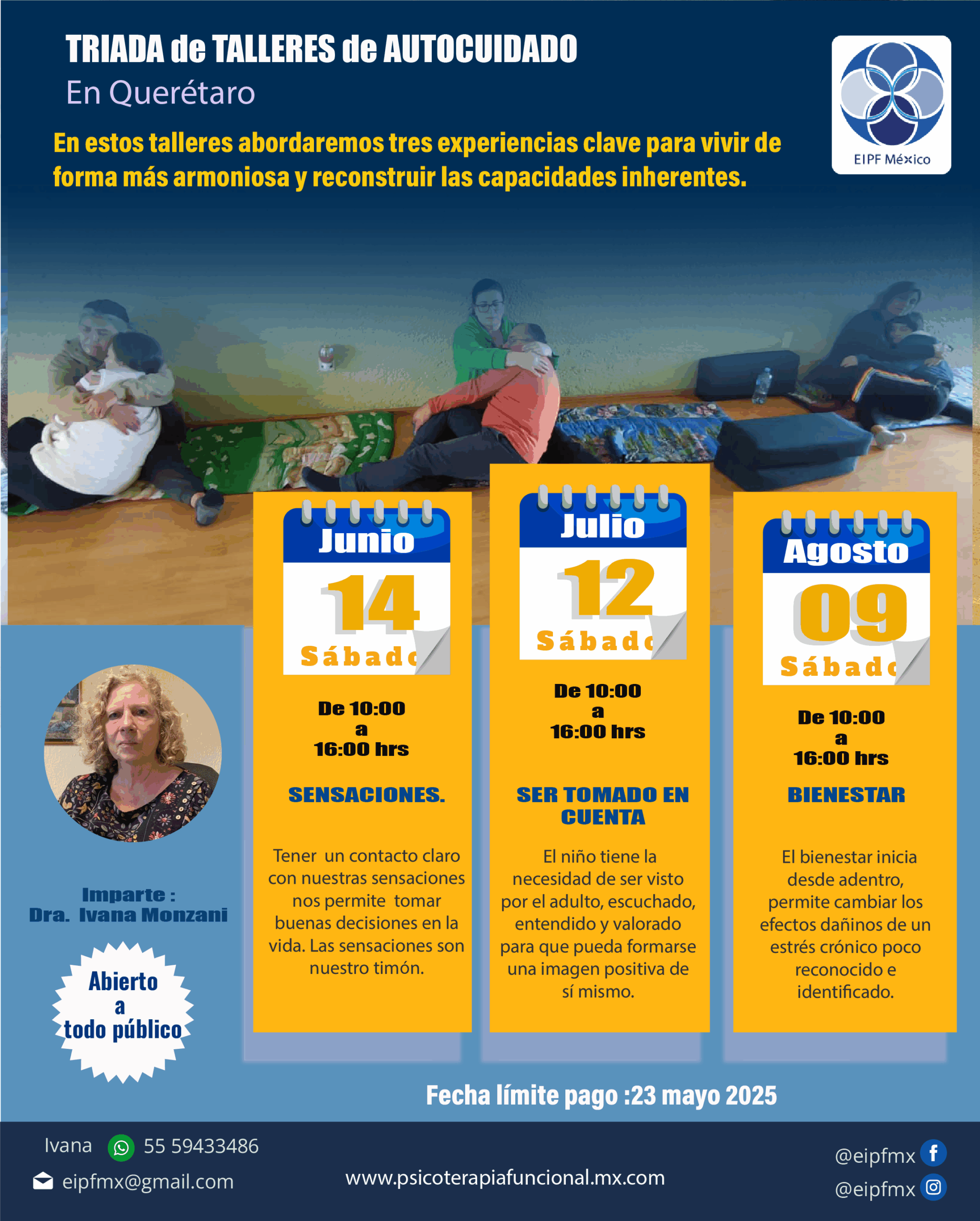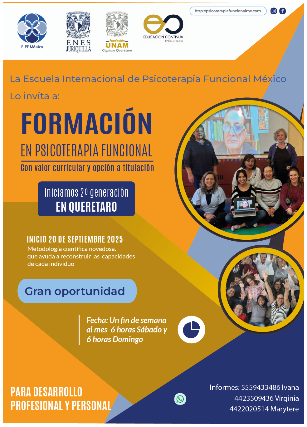 Directora de la Escuela Internacional de Psicoterapia Funcional en México desde 2004, formando cuatro generaciones de psicoterapeutas en cdmx y 1 en Querétaro.